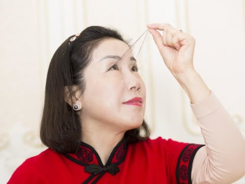 وتنحدر المرأة من شانغزو، جنوبي الصين، وتقول إن هذه الرموش الطويلة التي تتمتع بها من "عطاء بوذا".