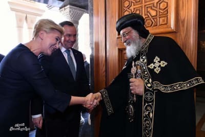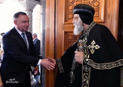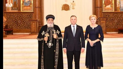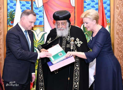 استقبل البابا تواضروس الثاني، ظهر اليوم الاثنين، الرئيس البولندي أندريه دودا و قرينته أغاتا كورنهاوزر دودا في المقر البابوي بالكاتدرائية المرقسية بالعباسية.