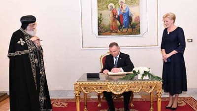وقال الرئيس البولندي، إن مصر بلد مهمة لجميع المسيحيين في العالم لأنها أرض إنجيلية وهذا له أهميته في العهدين القديم والجديد، وكما كانت مصر ملجأً للعائلة المقدسة لذلك فإن وجود الأقباط هنا منذ آلاف السنين مهم لكل المسيحية.