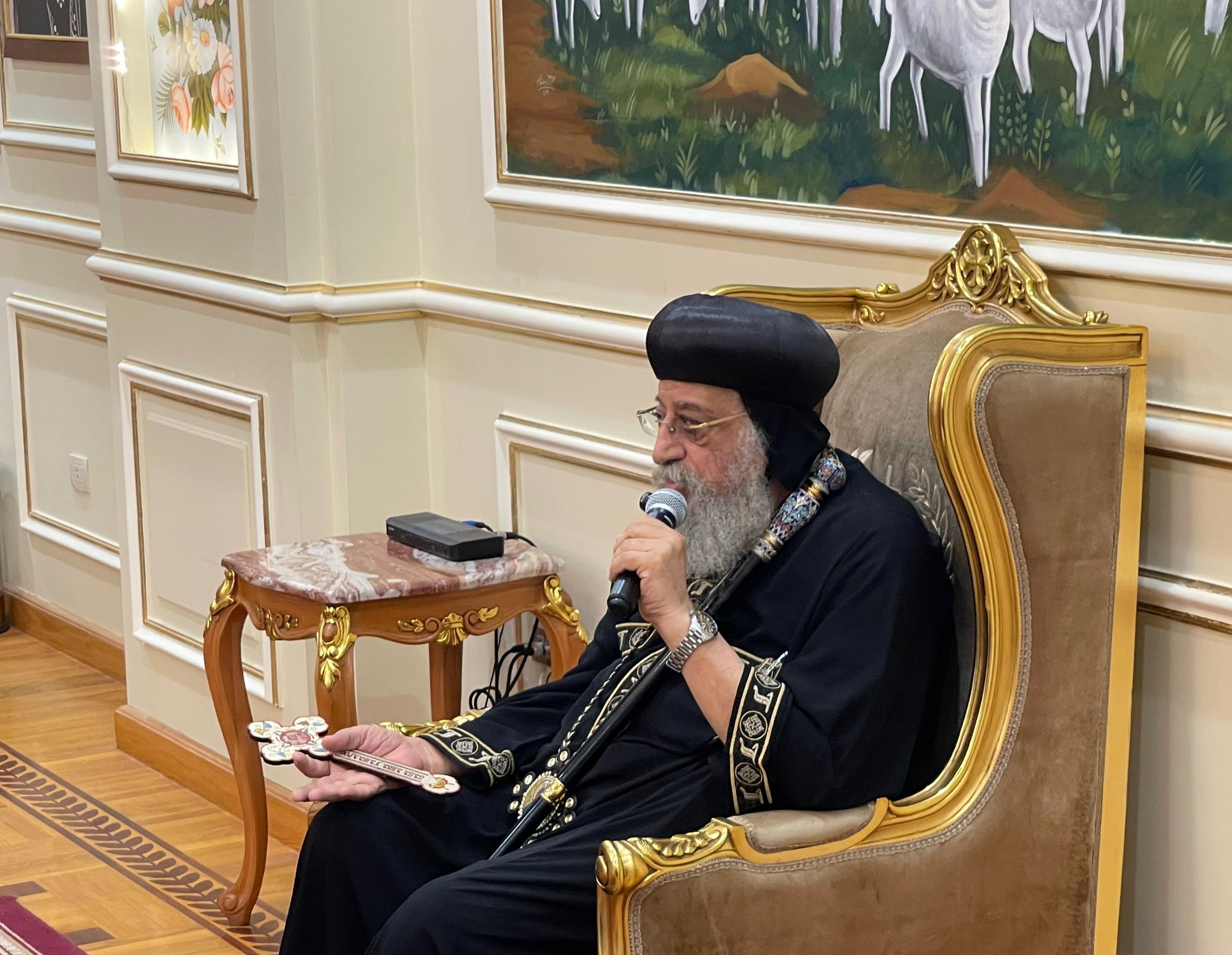 وتحدّث قداسة البابا خلال اللقاء عن تاريخ مصر الحضاري وتطور هويتها عبر العصور، قبل أن ينتقل للحديث حول الشأن الكنسي، مؤكدًا أهمية الصلاة والعمل المشترك من أجل وحدة المسيحيين، قائلاً: «لنواصل الصلاة من أجل وحدة المسيحيين ولنعمل معًا لإيصال صوت واحد للمسيحيين إلى العالم».