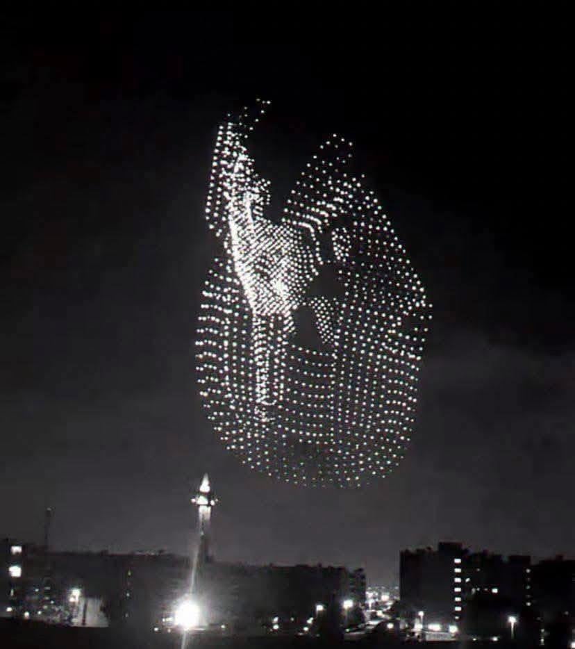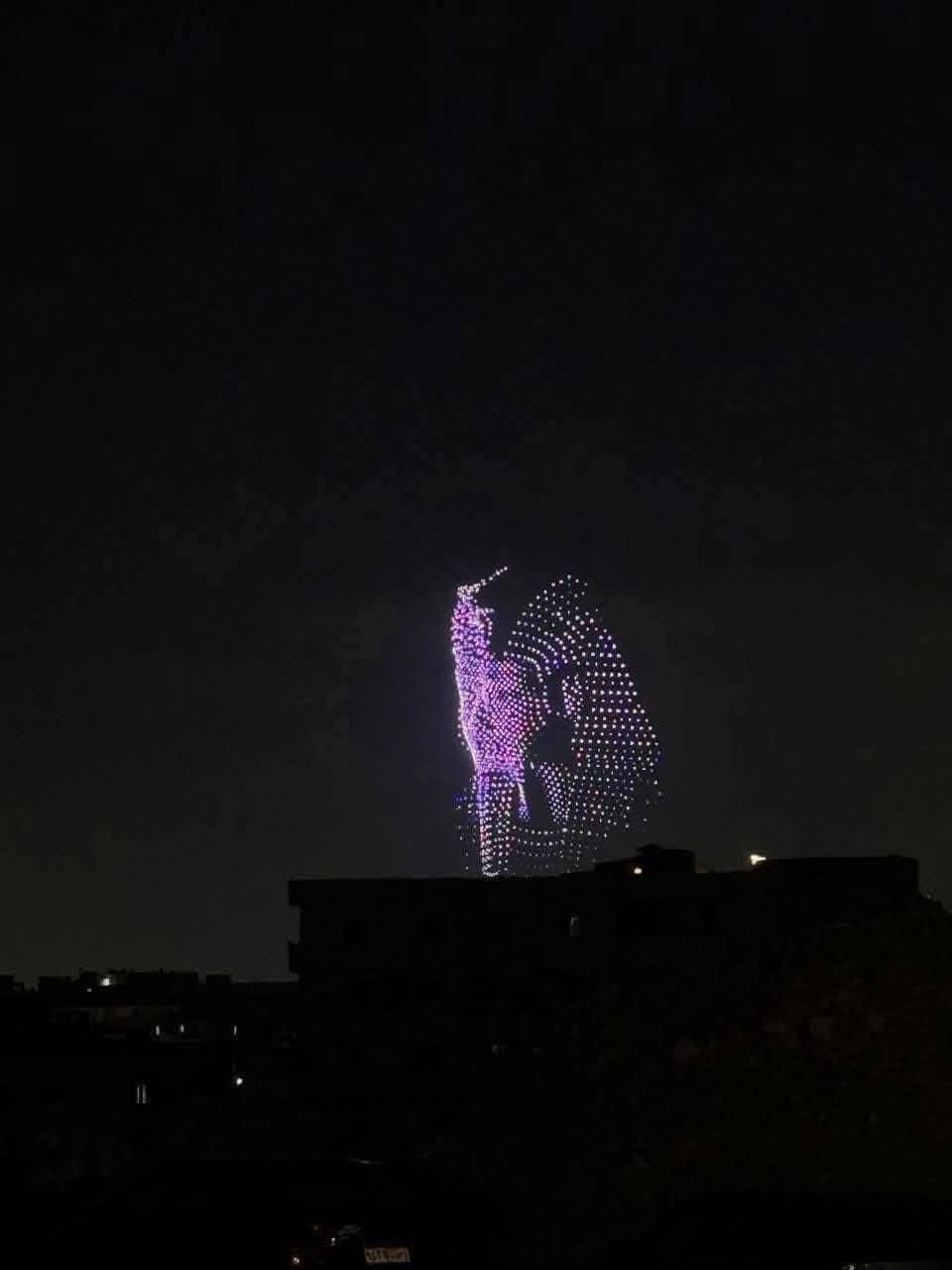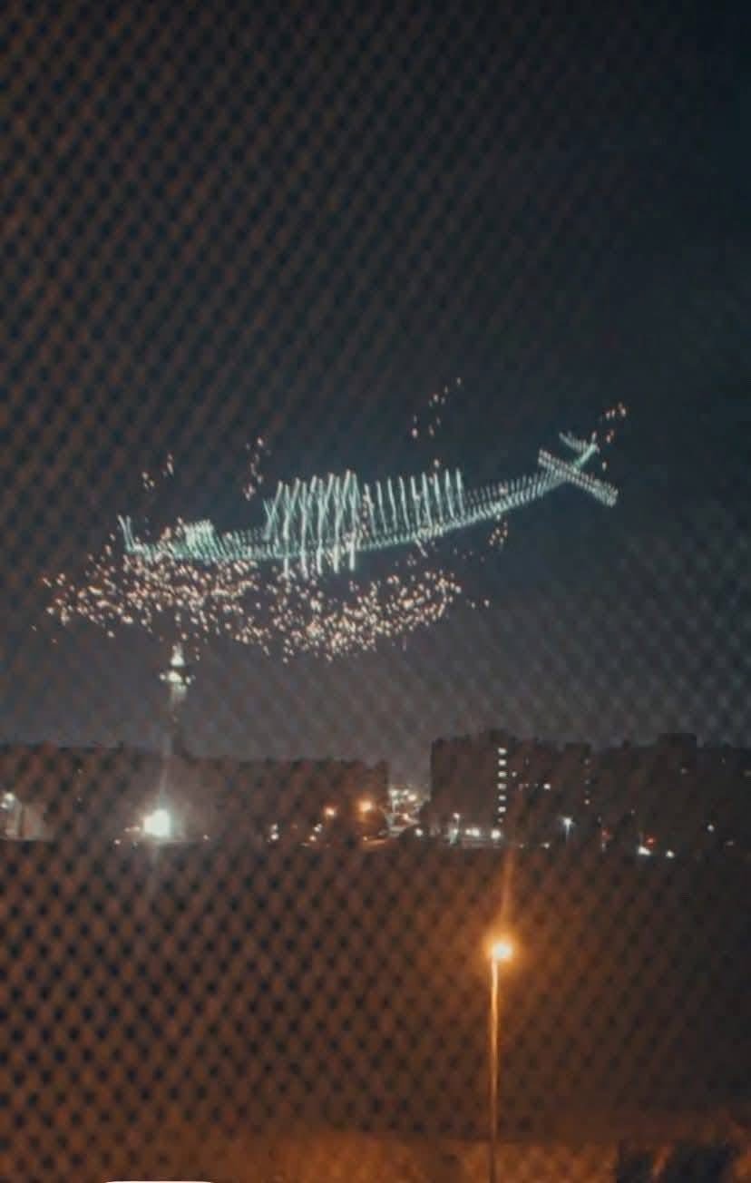 وأضاف:" سماء الهرم منذ قليل بروفة لحفل افتتاح المتحف المصري الكبير".