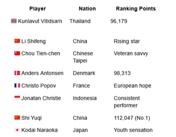✅ Top 8 players/pairs based on BWF World Tour standings