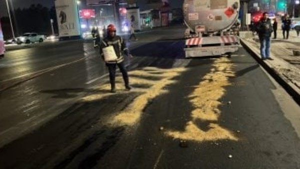 الشارع غرق بنزين، اصطدام مقطورة نقل مواد بترولية بلوحة إعلانية بالتجمع