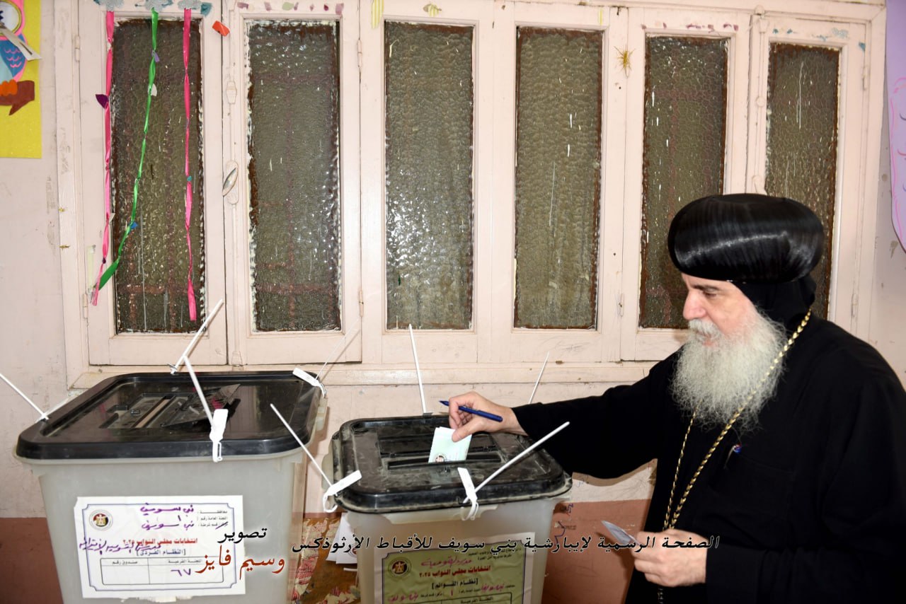 رافق نيافة الأنبا غبريال عدد من الآباء الكهنة وأبناء الإيبارشية الذين أبدوا سعادتهم بالمشاركة الإيجابية في العملية الانتخابية وسط أجواء يسودها النظام والانضباط.