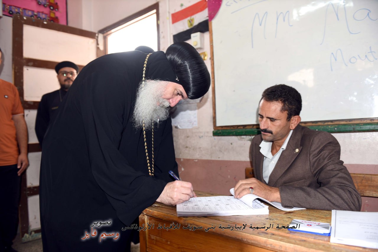 | 10 نوفمبر 2025أسقف بني سويف الأنبا غبريال يدلي بصوته في لجنته بمدرسة القومية الخاصة