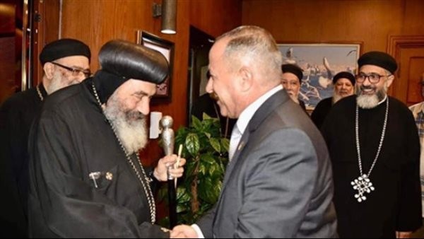 وفد النيابة الإدارية يزور المقر البابوي بالقاهرة ويهدى البابا توضراوس الثاني الدرع التذكاري