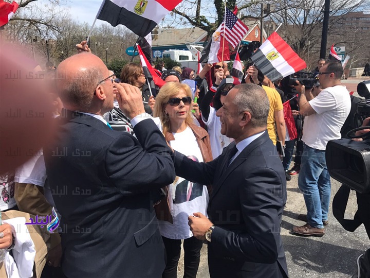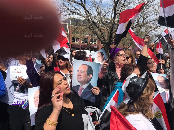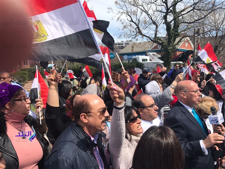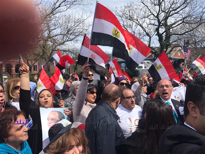 ردد أبناء الجالية المصرية بواشنطن خلال وقفتهم الداعمة للرئيس عبدالفتاح السيسى، الذي يزور الولايات المتحدة الأمريكية حاليا، هتافات مؤيدة للرئيس السيسي منها " مصر وأمريكا تحاربان الارهاب، ساعدوا مصر فى محاربة الارهاب، نحن ندعم الرئيس السيسى، نحن ندعم حكومتنا ؛ نحن ندعم قواتنا المسلحة تأكيدا على وقفهم مع وطنهم فى استمرار محاربة الإرهاب.