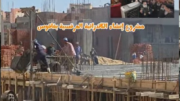 فيديو .. شد حديد صبة سقف الجزء الثاني من الكاتدرائية المرقسية بفاقوس برعاية الأنبا مقار