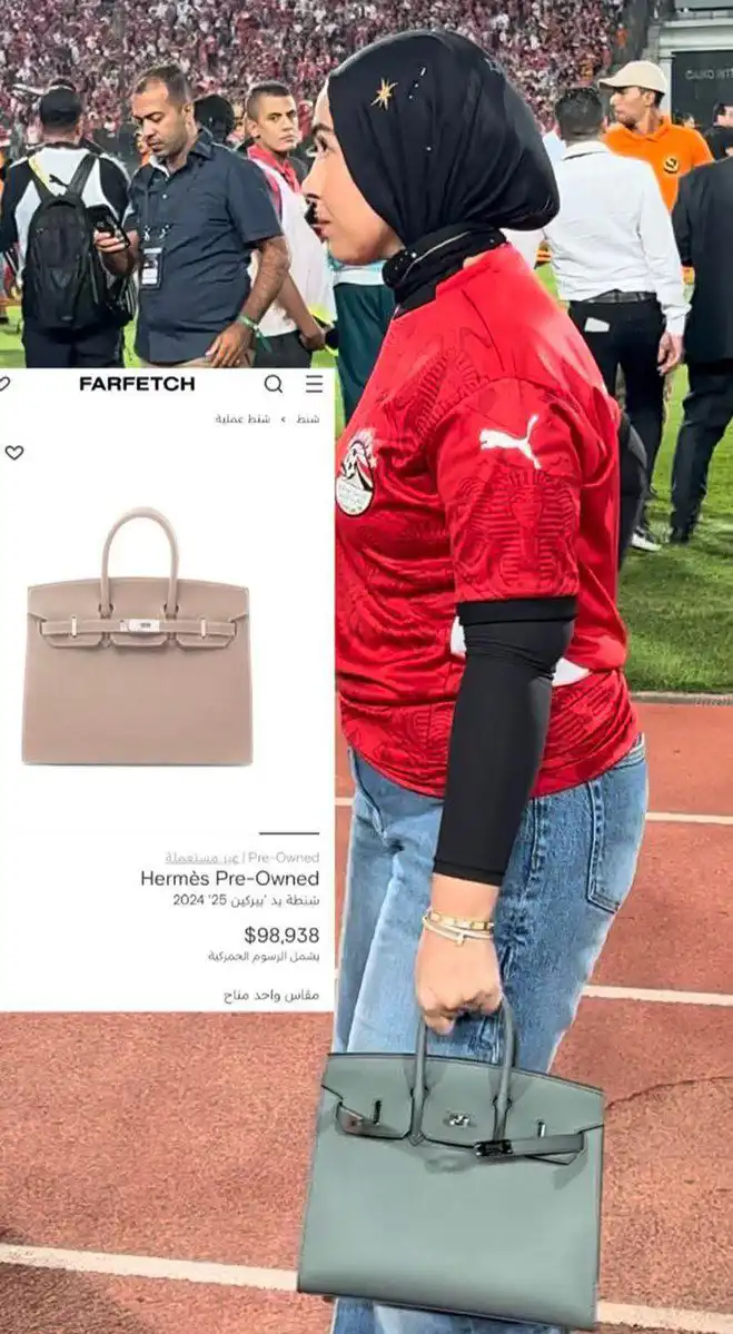 الحقيبة التي تنتمي إلى مجموعة "بيركين" الشهيرة من دار "هيرميس" الفرنسية، لفتت الأنظار بقيمتها المرتفعة، إذ تتراوح أسعارها بين 25 و40 ألف دولار أمريكي، وقد تصل في بعض الإصدارات النادرة إلى 90 ألف دولار، ما جعلها محور نقاش بين رواد السوشيال ميديا.